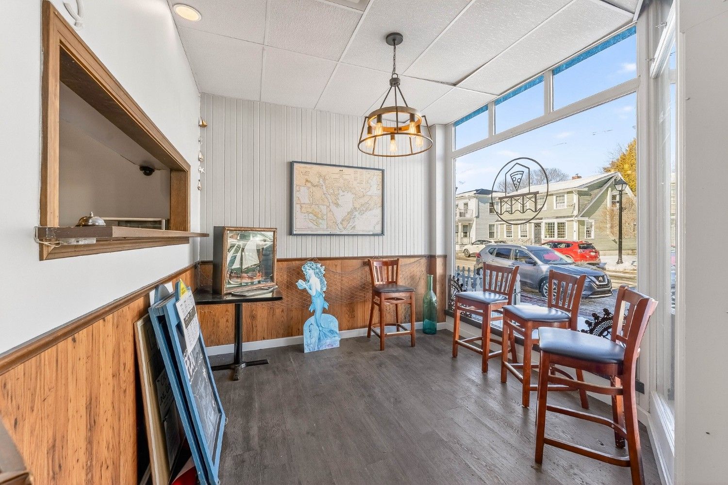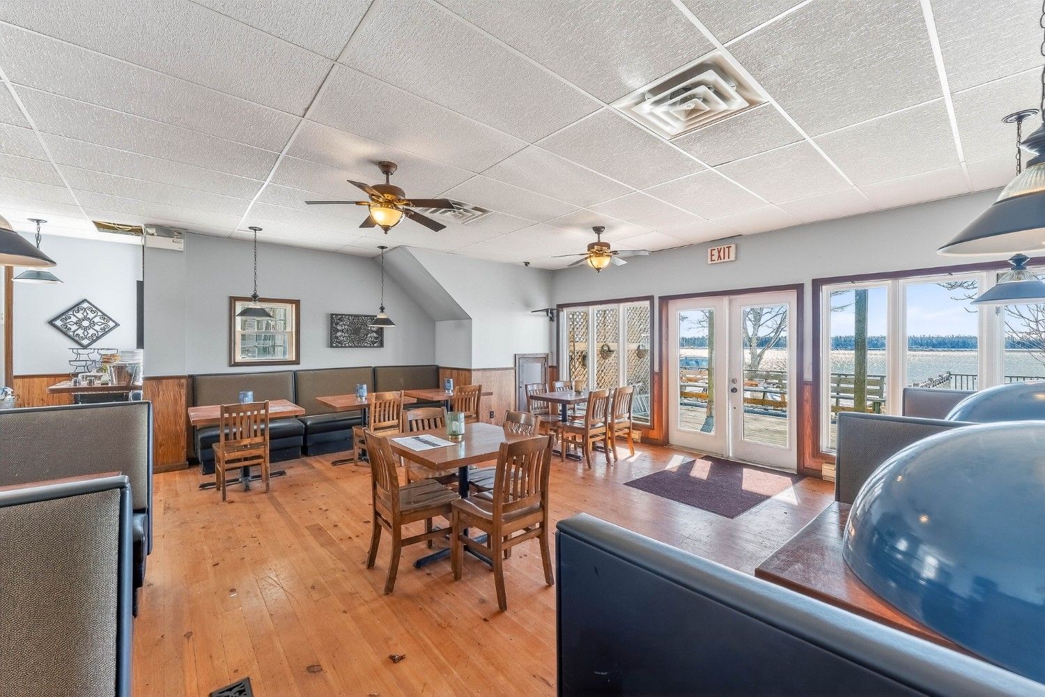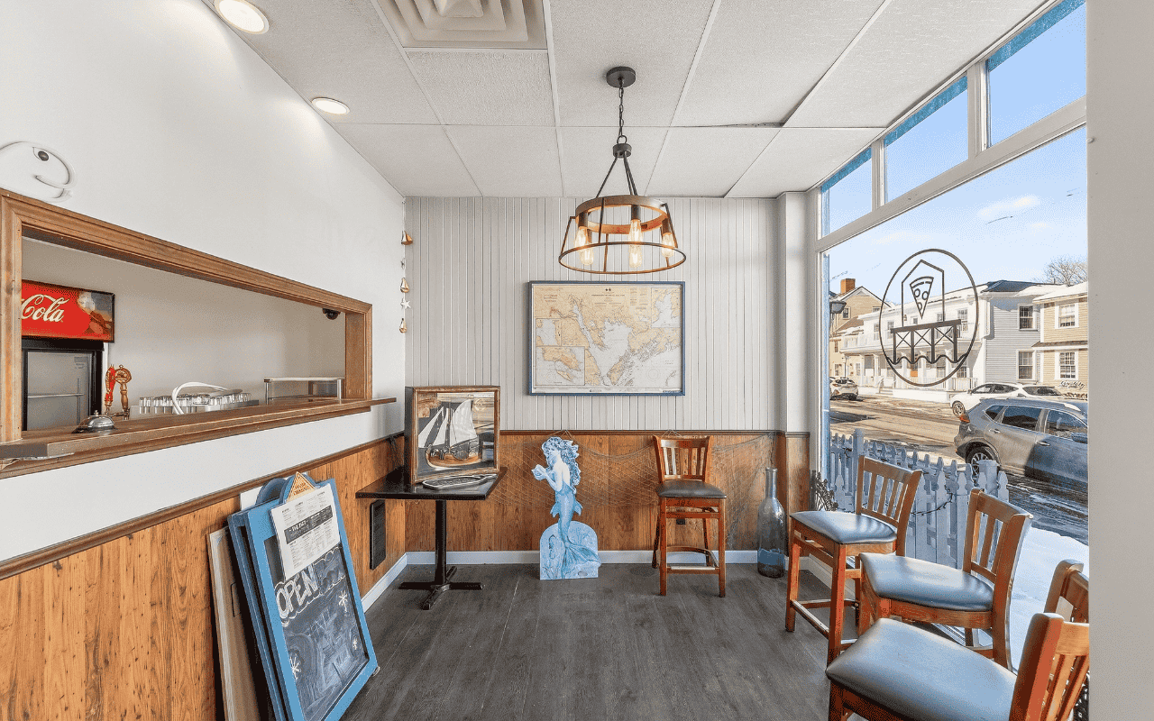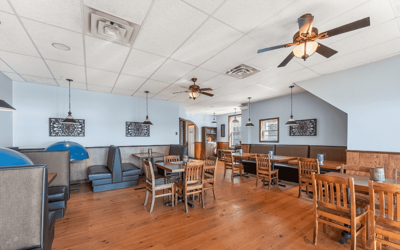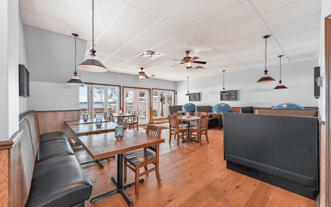 Fully equipped commercial kitchen with hoods, grills, and fryers included. The dining area comes furnished with tables, chairs, and bar seating. Prime waterfront location on Water Street in the Downtown Business District. Building and equipment included. No restaurant business or branding is part of the sale.