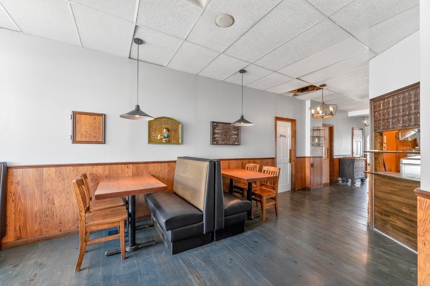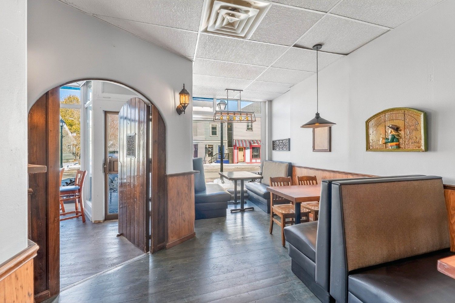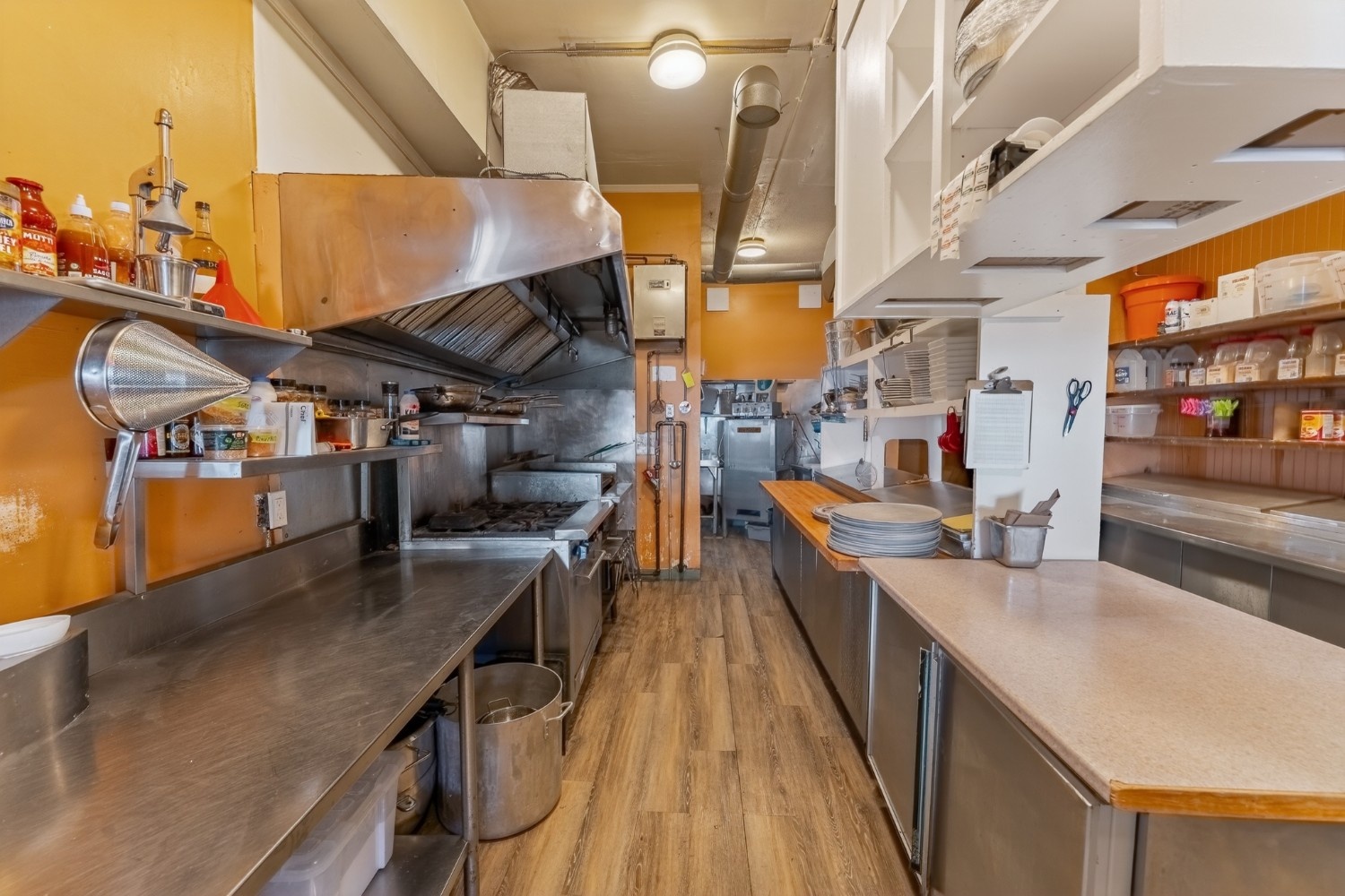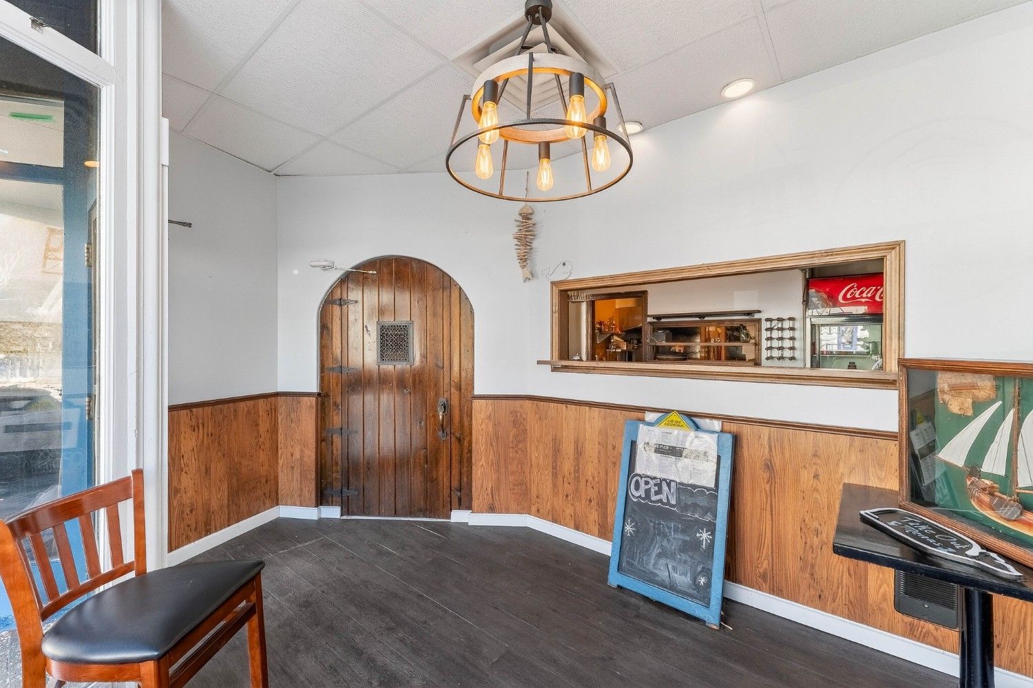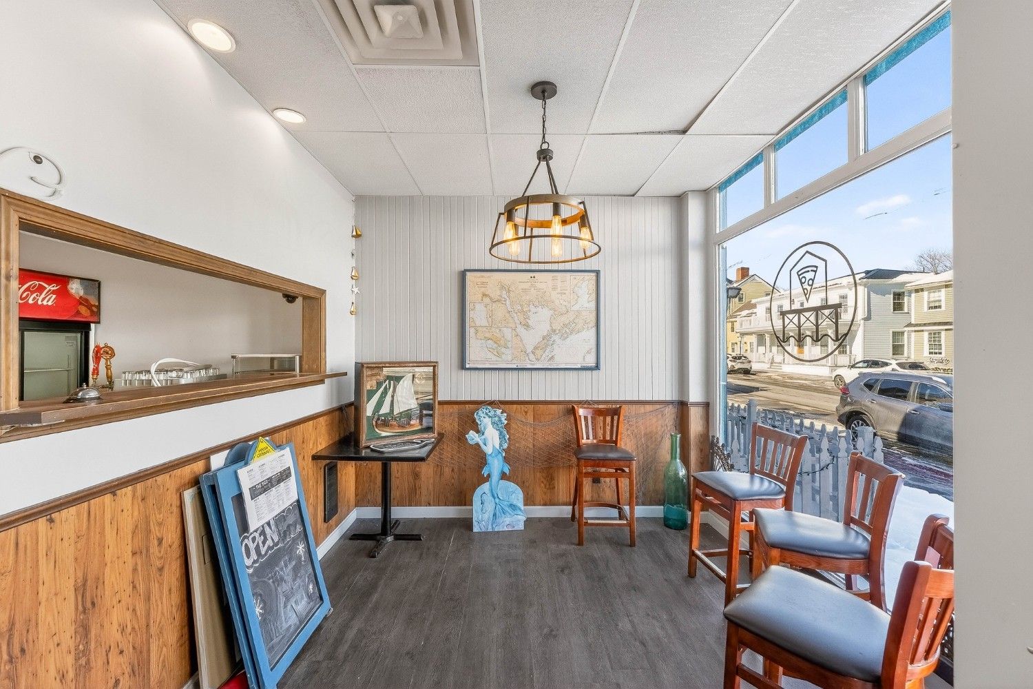 Fully equipped commercial kitchen with hoods, grills, and fryers included. The dining area comes furnished with tables, chairs, and bar seating. Prime waterfront location on Water Street in the Downtown Business District. Building and equipment included. No restaurant business or branding is part of the sale.
