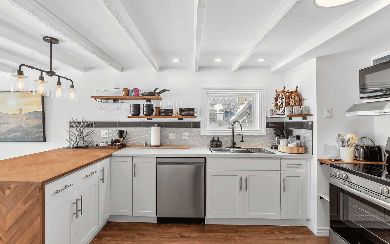 Suite 1 is a turn-key rental suite with a private patio overlooking the harbour, income ready today. Suite 2 is an unfinished 2 bedroom, 1 bathroom unit that can become additional living space or a separate rental for extra income.